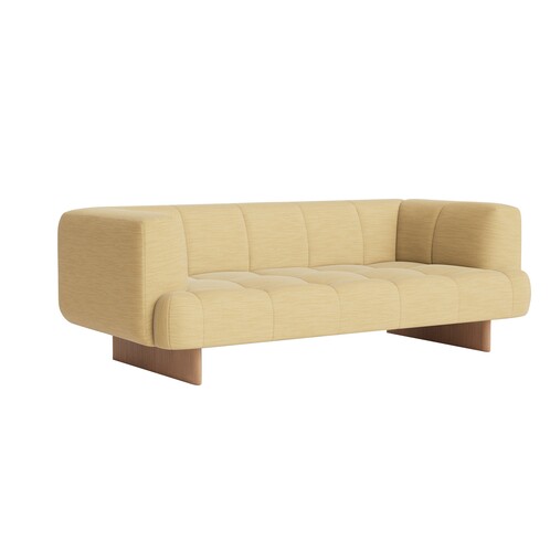 ocre white/Tartaglia 857 (35% cotton, 25% acrylic, 35% polyester, 5% wool)/lacquered oak base/WxHxD 214x72x109cm/ with felt glides