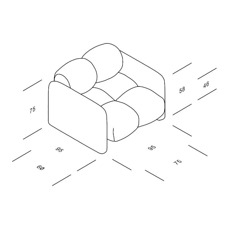| Dimensions | Width: 95cm Height: 75cm Depth: 95cm Seat Height: 46cm Armrest Height: 58cm |