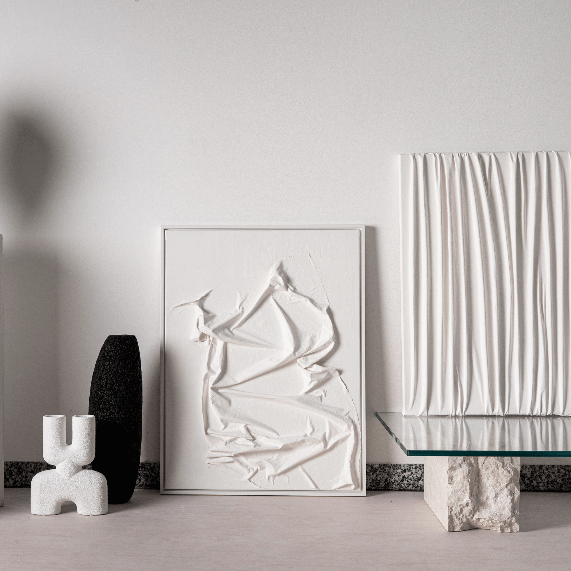 white/Frame glazed white/WxH 60x80cm/Each piece is unique!