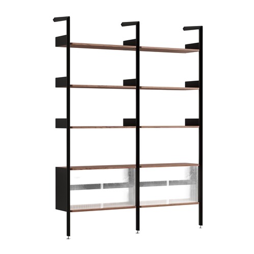 | Materials | frame: aluminium, shelves: oak veneer, cabinet element: oak veneerframe: aluminium, shelves: walnut veneer, cabinet element: walnut veneerframe: aluminium, shelves: steel, cabinet element: walnut veneerframe: aluminium, shelves: steel, cabinet element: oak veneer |