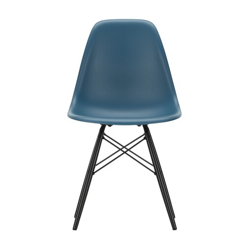 bleu océan /siège plastique recyclé post-consommation/structure érable noir/ acier noir/ patins en feutre noir/PxHxP 46,5x83x55cm