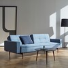 Das Dublexo Styletto Schlafsofa mit Armlehnen Holz dunkel wurde von Per Weiss für die Marke Innovation entworfen. Die Silhouette dieses eleganten Schlafsofas orientiert sich an der Formgebung des klassischen skandinavischen Designs. Mit seiner reduzierten Linienführung verbindet das Sofa auf perfekte Weise ein ästhetisches Erscheinungsbild mit großem Komfort und praktischen Funktionen. Die Rückenlehne des Dublexo Styletto Schlafsofa mit Armlehnen Holz dunkel ist in der Mitte geteilt. Jedes Segment lässt sich einzeln in drei bequemen Positionen zum Sitzen, Relaxen und Schlafen arretieren. Zum harmonischen Gesamteindruck des Sofas trägt der asymmetrische Aufbau der Polsterung bei. Am oberen Ende ist sie etwa 5 cm schlanker als an der vorderen Kante des Sitzkissens.