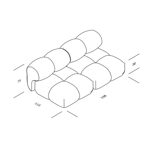 | Abmessungen | Breite: 190cm Höhe: 74cm Tiefe: 115cm Sitzhöhe: 38cm Höhe Rückenlehne: 74cm |